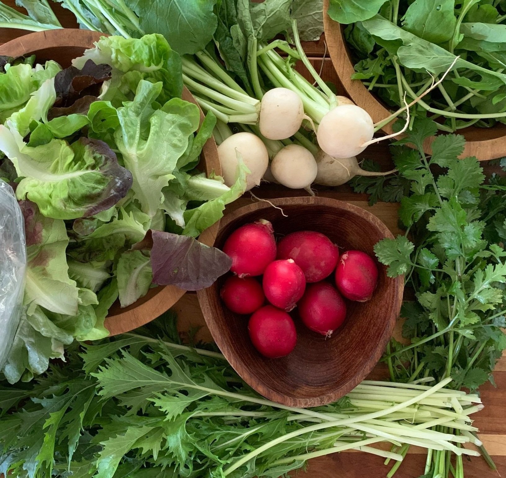 Our garden produces a wide variety of seasonal vegetables, herbs, and flowers. Everything is grown in healthy nutrient balanced soils without the use of chemical fertilizers and pesticides. Our goal is to focus on building the health of the soil to grow the tastiest and healthiest plants possible. Be sure to check out our online store to see all the current inventory!
